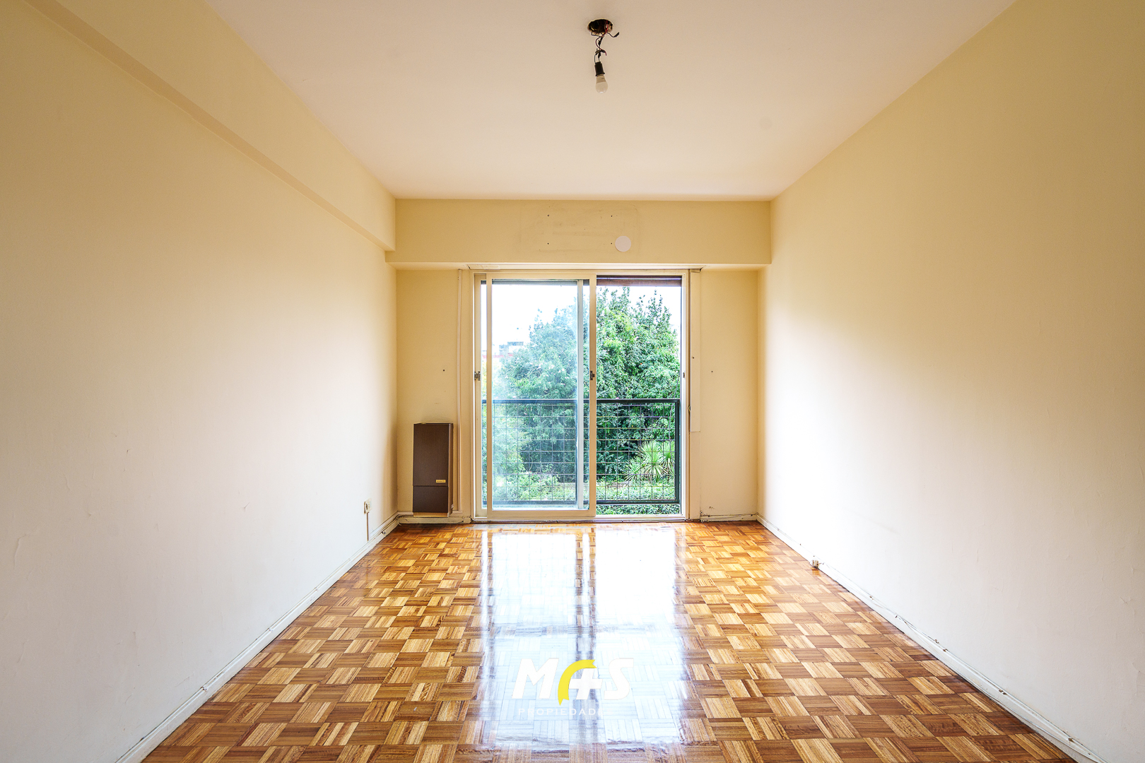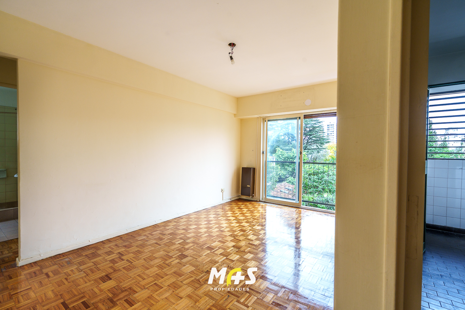 - Living comedor con balcón francés que aporta luminosidad y vista abierta.